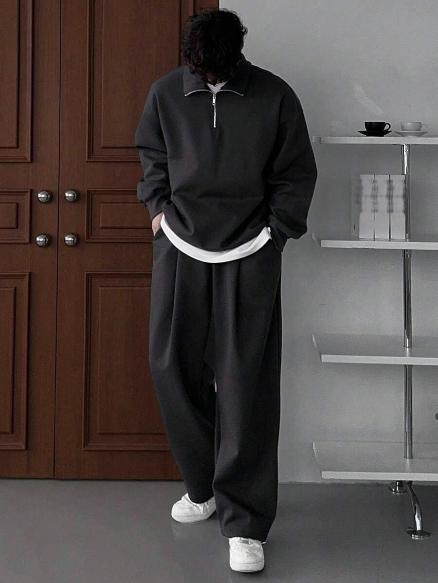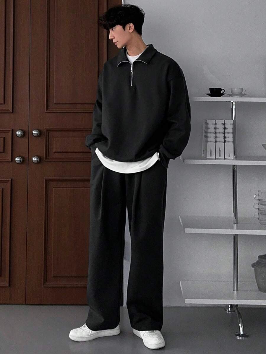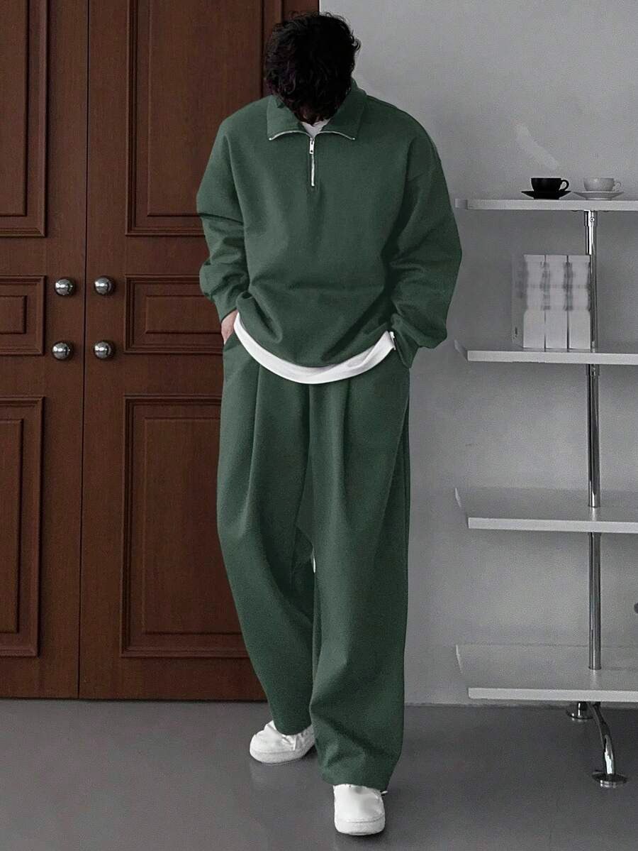 يتكون الطقم من بلوزة بسحاب ربع تمنح سهولة في الارتداء وتضيف لمسة عملية للتصميم، مع بنطلون مريح مزود بجيوب لحمل الأغراض الأساسية. اللون السادة يمنح الطقم مظهراً مرتباً ويسهل تنسيقه مع مختلف الأحذية والإكسسوارات.