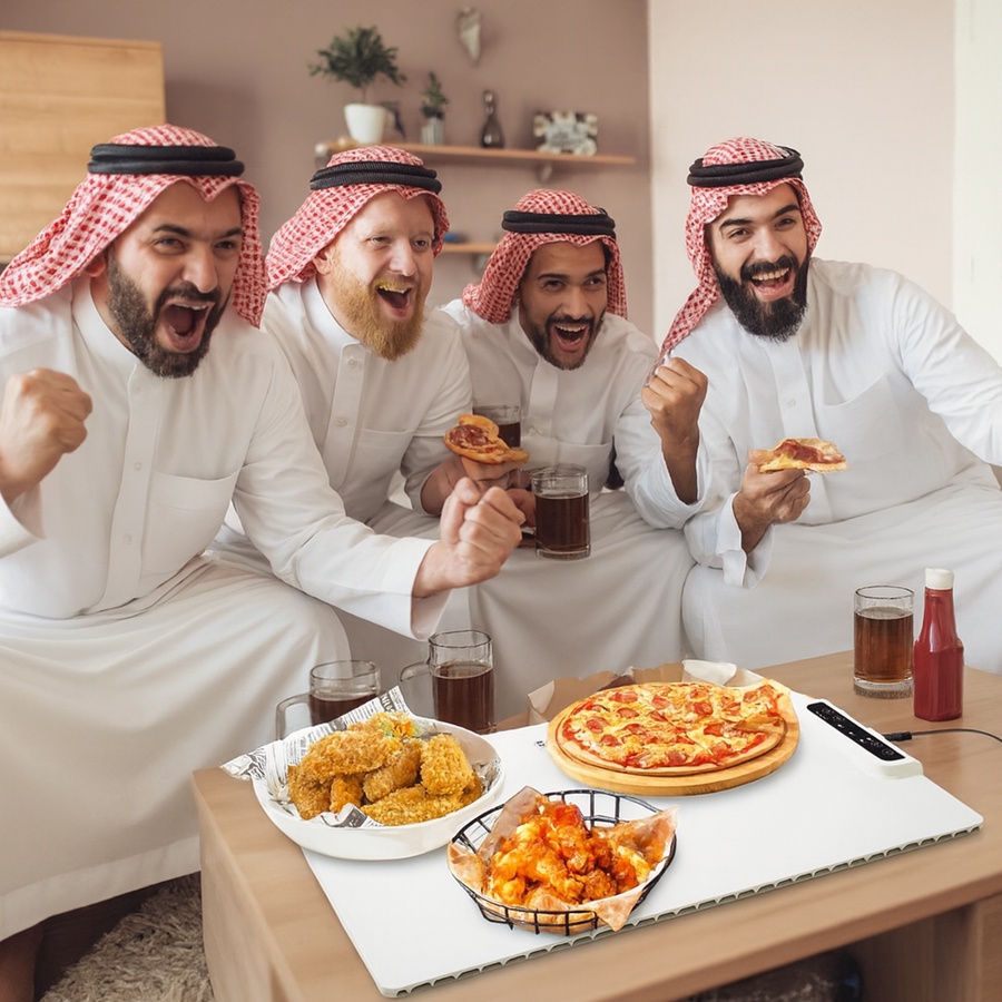 لوح تسخين الطعام للعزايم حل أنيق وعملي للحفاظ على حرارة الأطباق أثناء التقديم، بدون إعادة تسخين أو فوضى.