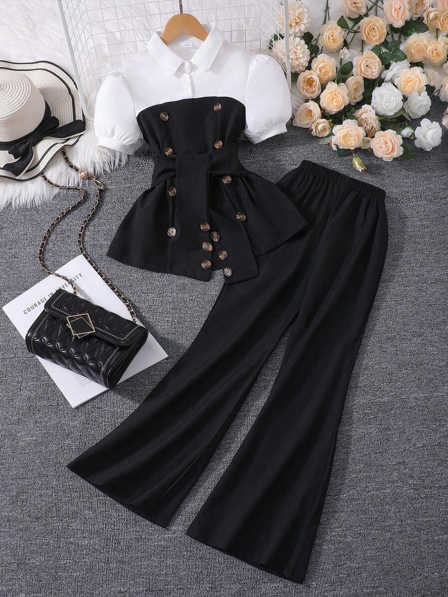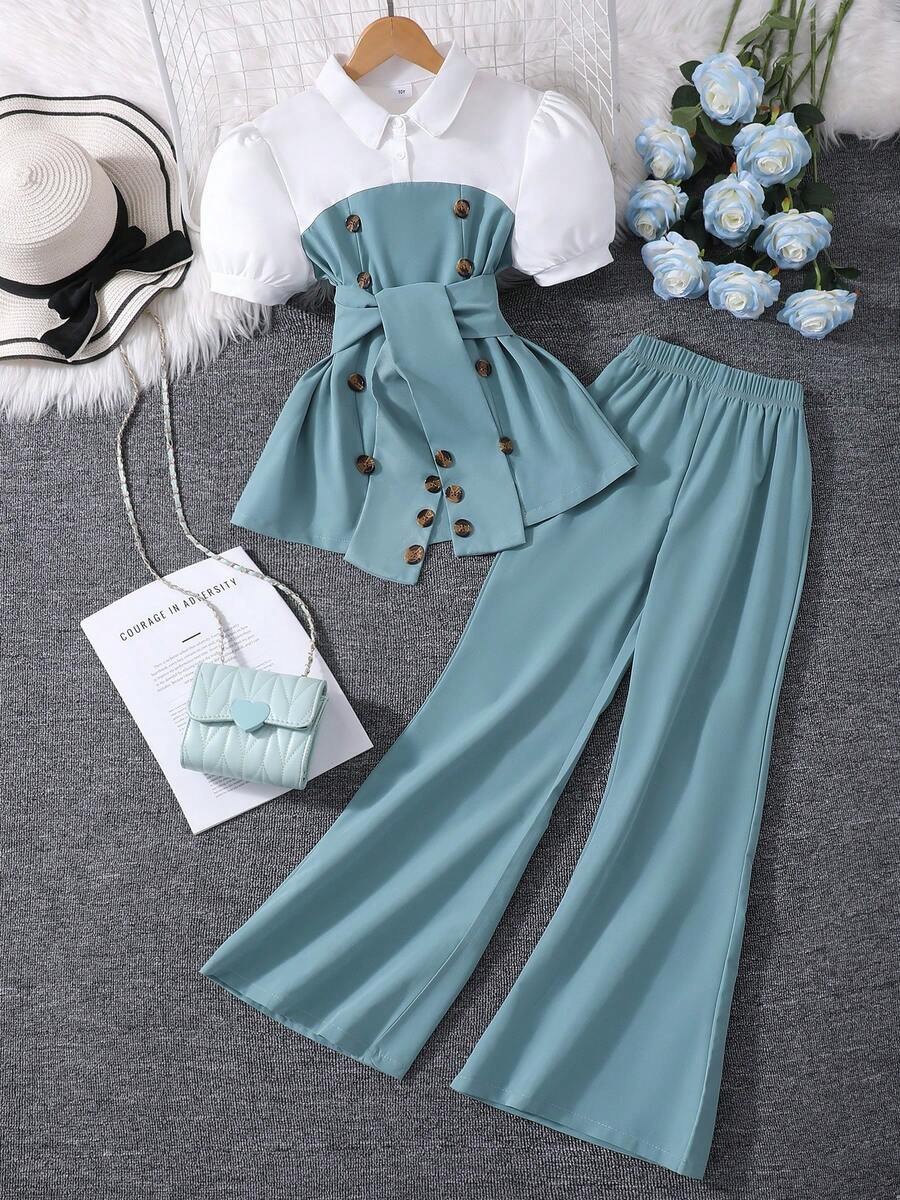 طقم بناتي أنيق يجمع بين الراحة والأناقة في تصميم واحد، ليكون خياراً مناسباً لإطلالات البنات في الربيع والصيف.