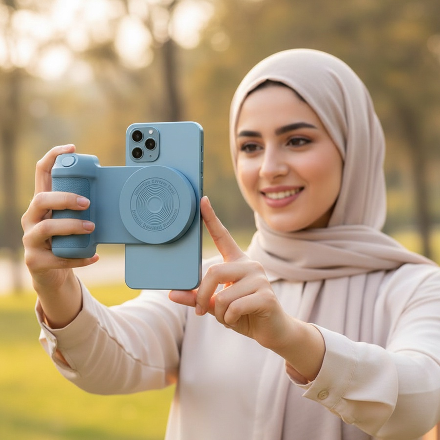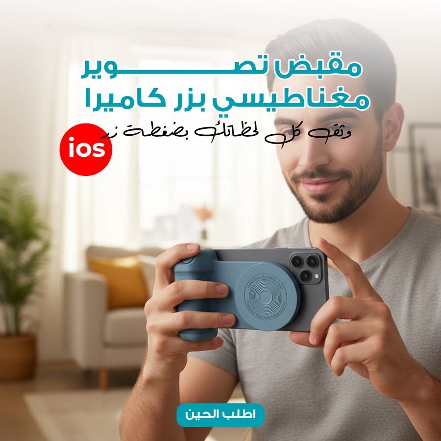 إذا تحب تصور بجوالك وتبي تحكم أسهل وثبات أفضل، فإن مقبض التصوير المغناطيسي بزر كاميرا iOS يعطيك تجربة أقرب للكاميرات الاحترافية.