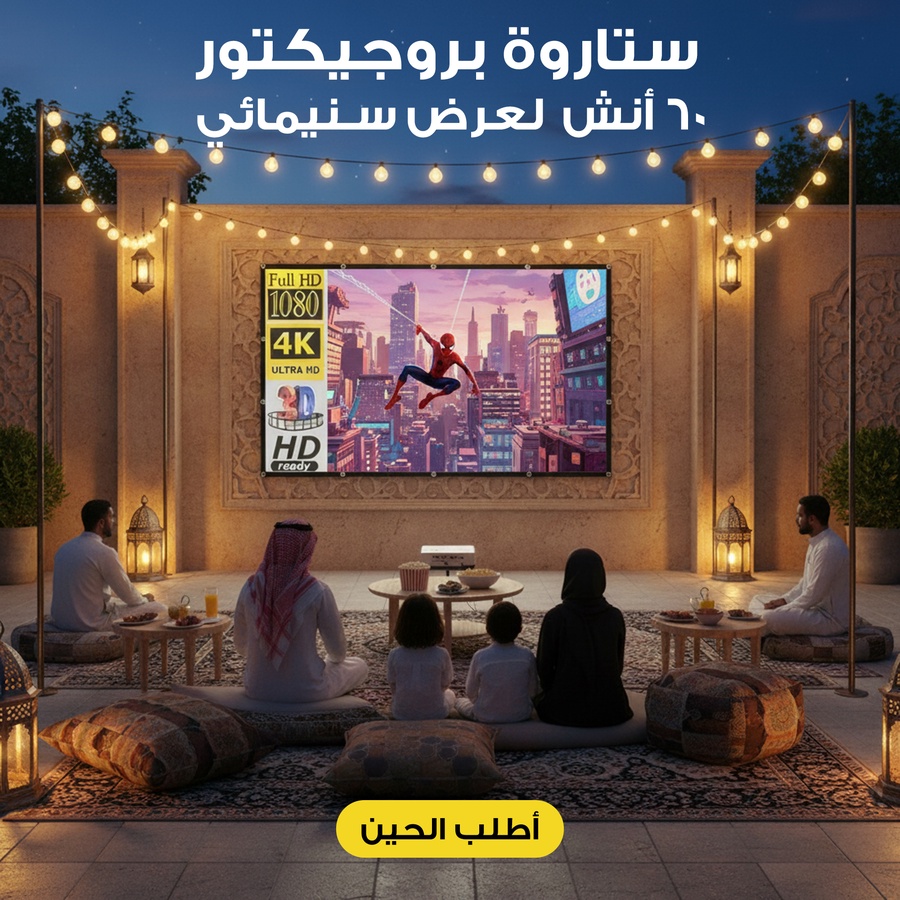 حوّل غرفتك إلى تجربة سينمائية ممتعة مع ستارة البروجيكتور 60 إنش المصنوعة من قماش ميلك سيلك الناعم الذي يمنحك صورة أوضح وتفاصيل أفضل.
