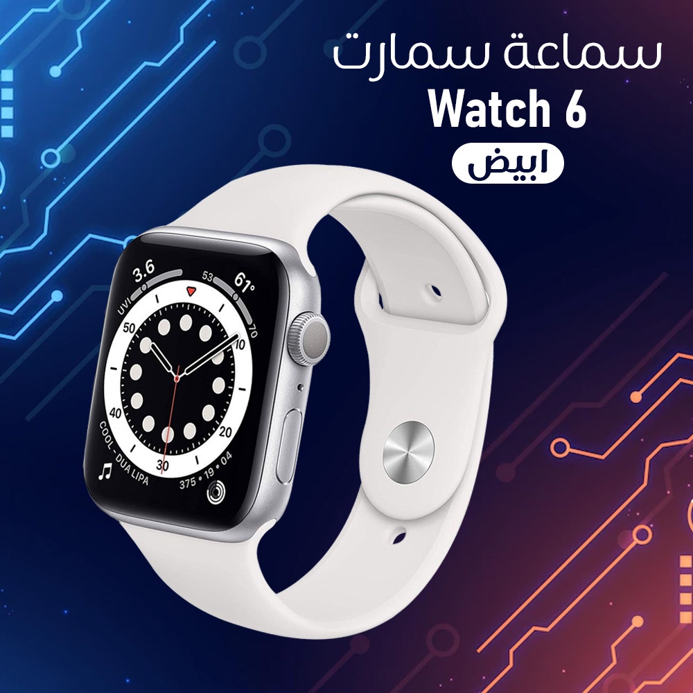 ساعة سمارت Watch 6 بشاشة كاملة لمس | قياس صحي + مكالمات بلوتوث | ابيض