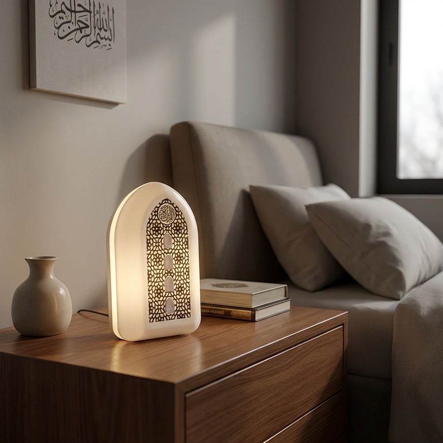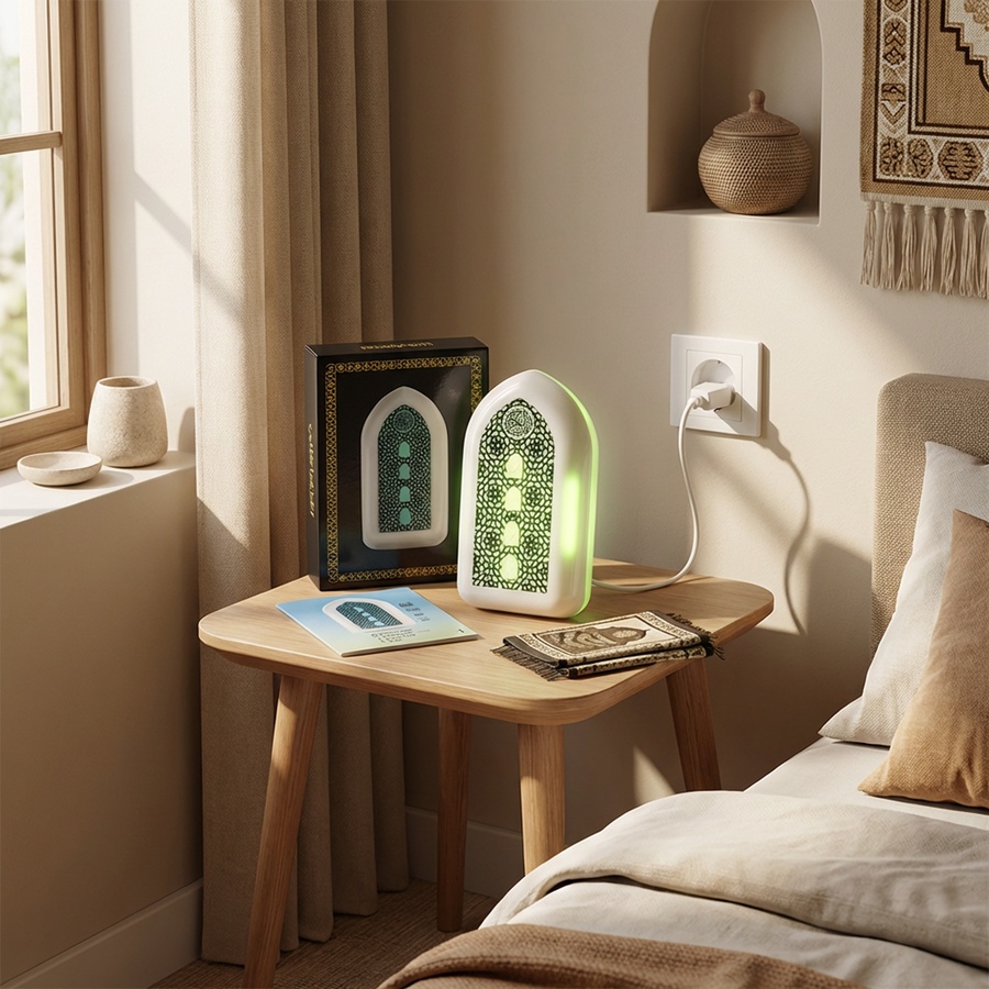 اجعل أجواء بيتك أكثر طمأنينة وراحة مع سبيكر القرآن الكريم متعدد الوظائف من Elbait.store.