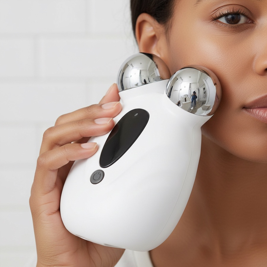 جهاز تدليك وشد الوجه الكهربائي برأس على شكل حرف V مصمم ليساعدك على تحسين مظهر البشرة وتعزيز نضارتها بطريقة عملية وسهلة في المنزل.